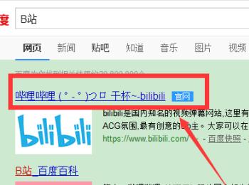 1. 首先第一步打开电脑浏览器,根据下图箭头所指,搜索并点击【哔哩哔哩 官网】链接。