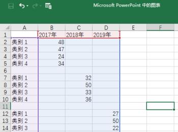 3. 第三步根据下图所示,成功在幻灯片中插入图表,并且以类别进行分组。