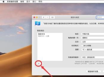 4. 第四步进入【语言和地区】页面后,根据下图箭头所指,点击左下角【+】号图标。