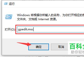 1.第一步,来到下图所示的运行窗口后,点击输入框,并输入“gpedit.msc”,接着点击页面底部的确定选项。