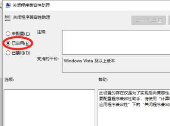 4.第四步,来到下图所示的关闭程序兼容性助理页面后,点击已启用左边的选项框,接着点击右下角的确定选项。