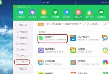 第二步点击左侧实用工具,就能看见桌面小助手了