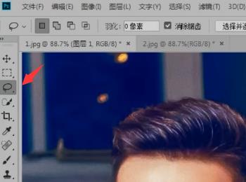 1. 首先打开电脑上的PS软件,将用到的图片导入软件中,然后使用左侧的套索工具,将其中一张人物的脸框选出来;