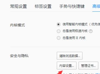 4.第四步,我们可以看到如下图所示的高级页面,点击内容与隐私中的内容设置选项。