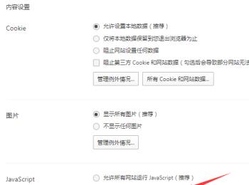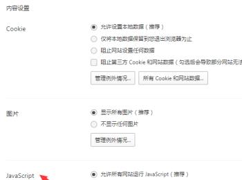 5.第五步,来到下图所示的内容设置页面后,找到箭头所指的JavaScript选项、