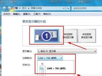 5. 第五步根据下图箭头所指,将分辨率滑块向上滑动至推荐参数。