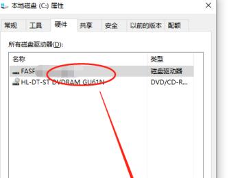 5. 如图,在弹出的属性窗口中,选择硬件后,点击下方的属性按钮