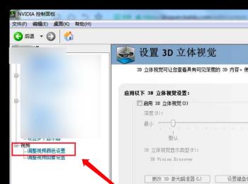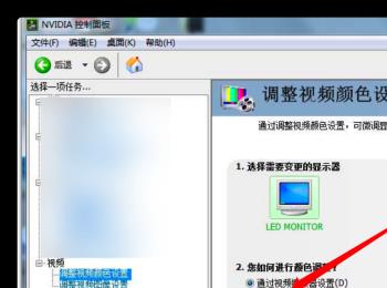 4.第四步,我们可以看到如下图所示的NVIDIA页面,点击页面左侧的调整视频颜色设置选项。