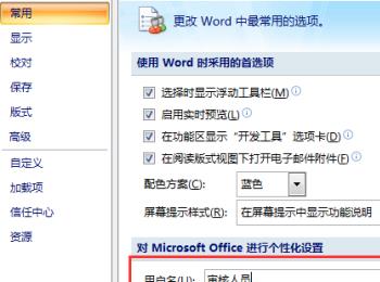 4. 在打开的窗口中,点击左侧的常用选项,在右侧找到用户名栏,在输入框中输入用户名的名称,然后进行保存确定即可。