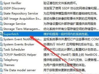 3. 如图,在弹出的服务列表中,找到SuperFetch的服务选项,双击。