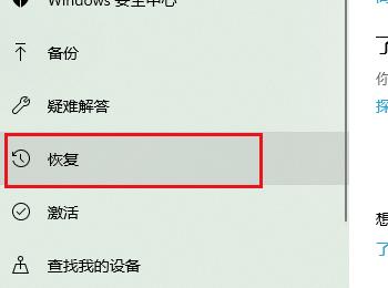 3. 第三步进入【更新和安全】页面后,根据下图所示,点击左侧【恢复】选项。