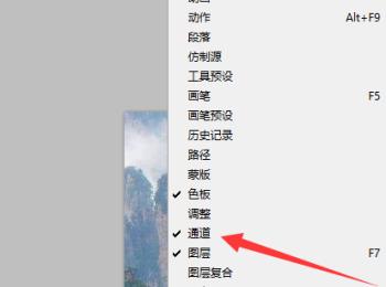 3. 第三步在弹出的菜单栏中,根据下图箭头所指,找到并勾选【通道】选项。