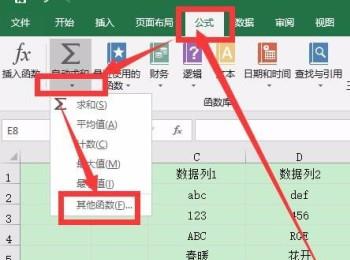 1. 首先第一步先选中单元格,接着根据下图箭头所指,依次点击【公式-自动求和-其他函数】选项。