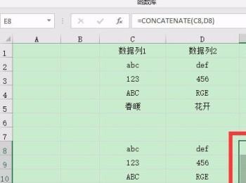 6. 最后向下拖动,根据下图所示,成功合并所有单元格数据。