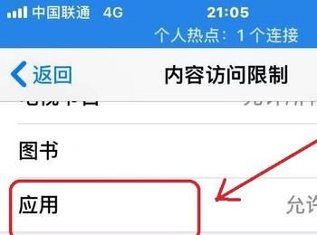 5. 第五步进入【内容访问限制】页面后,根据下图箭头所指,点击【应用】选项。