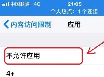 6. 最后在【应用】页面中,根据下图箭头所指,点击【不允许应用】选项即可。