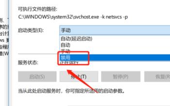 4.第四步,我们可以看到如下图所示的页面,点击启动类型右边的下拉箭头,接着点击弹出窗口中的禁用选项。