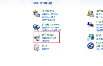 2. 进入控制面板页面后,找到硬件和声音选项,点击