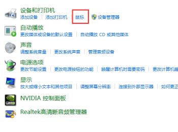 3. 在打开的硬件和声音页面,设备和打印机下,找到鼠标选项,点击