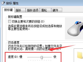 4. 在弹出的属性窗口中,通过滑动速度的滑块进行调整鼠标的速度