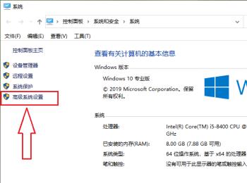 2.第二步,来到下图所示的属性页面后,点击箭头所指的高级系统设置选项。