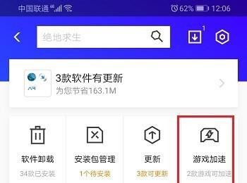 2. 第二步在跳转的页面中,根据下图所示,点击【游戏加速】选项。