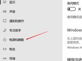 3. 第三步打开【设置】窗口后,根据下图箭头所指,依次点击【显示-电源和睡眠】选项。