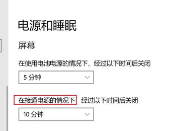5. 第五步根据下图所示,按照需求设置在接通电源情况下关闭屏幕的时间。