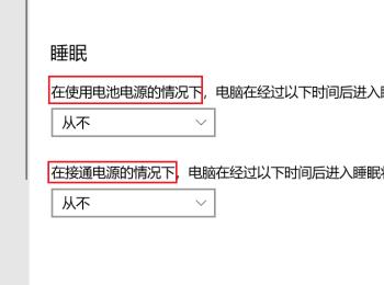 6. 最后根据下图所示,按照需求分别设置使用电池电源、接通电源情况下进入睡眠状态的时间。