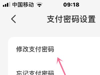 5. 第五步在跳转的页面中,根据下图箭头所指,点击【修改支付密码】选项。