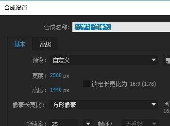 1、打开AE新建项目并新建合成,设置合成的名称、画面的大小、持续的时间等参数;