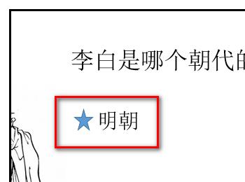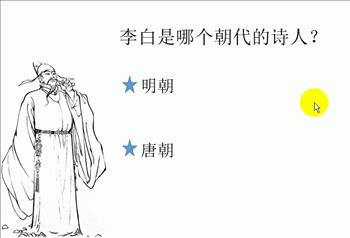 1、下面,小编制作有关古代诗人属于哪个朝代的问答小游戏。启动软件后,新建空白幻灯片;插入一张李白的图片,放在内容区的左下角,