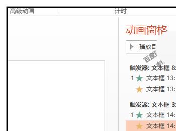 7、弹出“淡出”动画效果设置框,点开”计时“选项卡;下面弹出相关内容。鼠标点击“触发器”,下方弹出相关内容,点选“单击下列对象时启动效果”;然后,再点下小三角,在弹出的列表中点“唐朝”;因为“唐朝”是正确答案,所以对应的是“恭喜您,答对了!”文本框。最后记得点击确定。