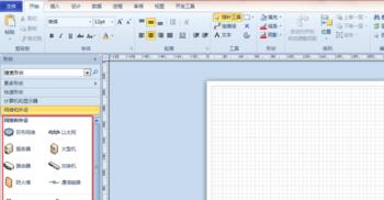 点击【基本网络图】进入绘图界面,在左侧形状列表里可以看到绘制基本网络图所需要的基本形状,如下图所示。