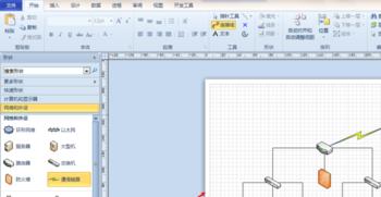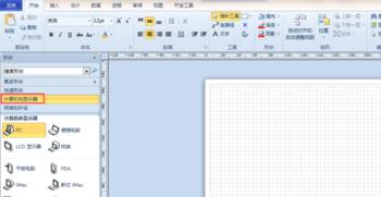 接下来开始绘制网络拓扑图了,首先点击左侧的形状列表,找到计算机和显示器形状,将图形拖到绘图面板,作为网络设备,如下图所示。