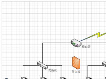 然后在图形里绘制交换机,路由器,防火墙,无线接入等设备,并用连接线连接,如下图所示。