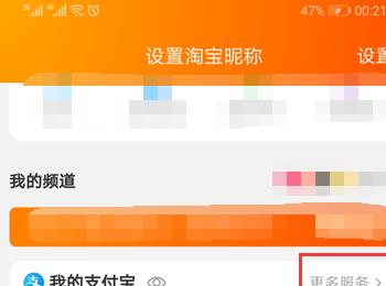 3. 第三步,在下图所示的我的淘宝界面中,点击“我的支付宝“中的更多服务选项。