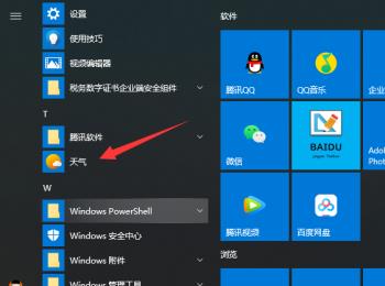 2. 在打开的菜单中,找到天气软件,点击打开;