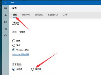 4. 如图,在弹出的设置页面,通用选项下,找到显示温度的选项,点选上下方的摄氏度选项即可完成操作;