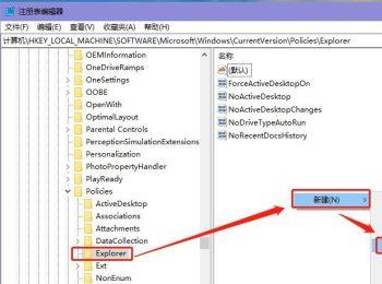 8. 然后在【Explorer】选项下,右侧的空白处,右键,依次点击【新建】—【DWORD(32位)值】,然后给新建的DWORD(32位)值命名为【NoDrives】。