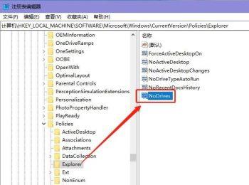 10. 隐藏的硬盘分区如果想要取消的话,则将前面新建的【NoDrives】值的数值数据设置为【0】即可取消隐藏。