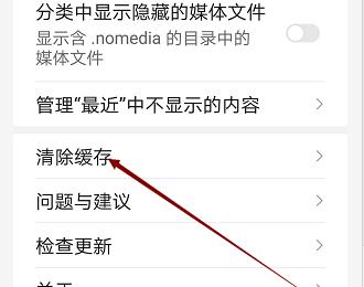 4. 如图,在打开的设置页面,我们就可以看到清除缓存的选项了,点击。