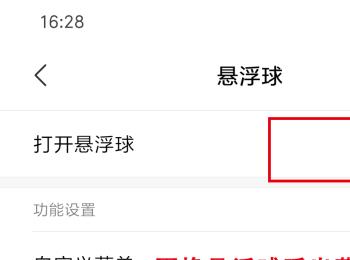 3. 如图,在打开的悬浮球页面,将打开悬浮球右侧的开关打开。