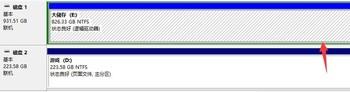 3. 在右侧打开的页面,可以查看到电脑磁盘的一些基本信息,选择剩余空间比较大的磁盘进行分区。