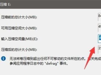 6. 在弹出的压缩窗口中,选择想要分区的大小,建议不要全部都分出去,如果全部分出去的话,之前的盘就会很卡。