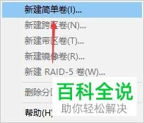 8. 在打开的菜单中,选择新建简单卷选项。