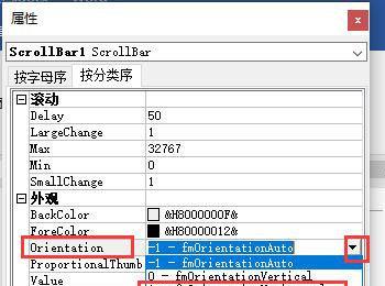 5. 在弹出的属性窗口中,找到Orientation属性,在右侧点击下拉三角,在打开的菜单中,选择1-fmOrientationHorizontal选项。