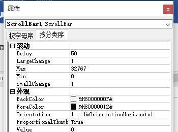 4. 如图,在页面上,默认插入了垂直滚动条。将该控件选中,然后点击上方设计模式下的属性按钮。