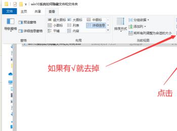 3. 第三步,在查看工具栏中,点击隐藏所选项目按钮,如果隐藏的文件项目选项左侧的方框被选中的话,就点击取消勾选。