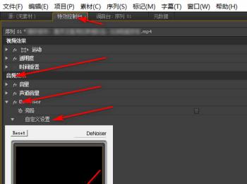4. 接下来,依次点击上方的【特效控制台】—【音频效果】—【DeNoiser】—【自定义设置】选项,选择第一个按钮点击,进行调整分贝。